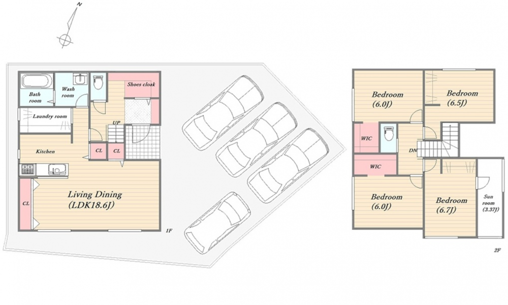 駐車スペースも広々4台可能です サンルーム シューズインクローク